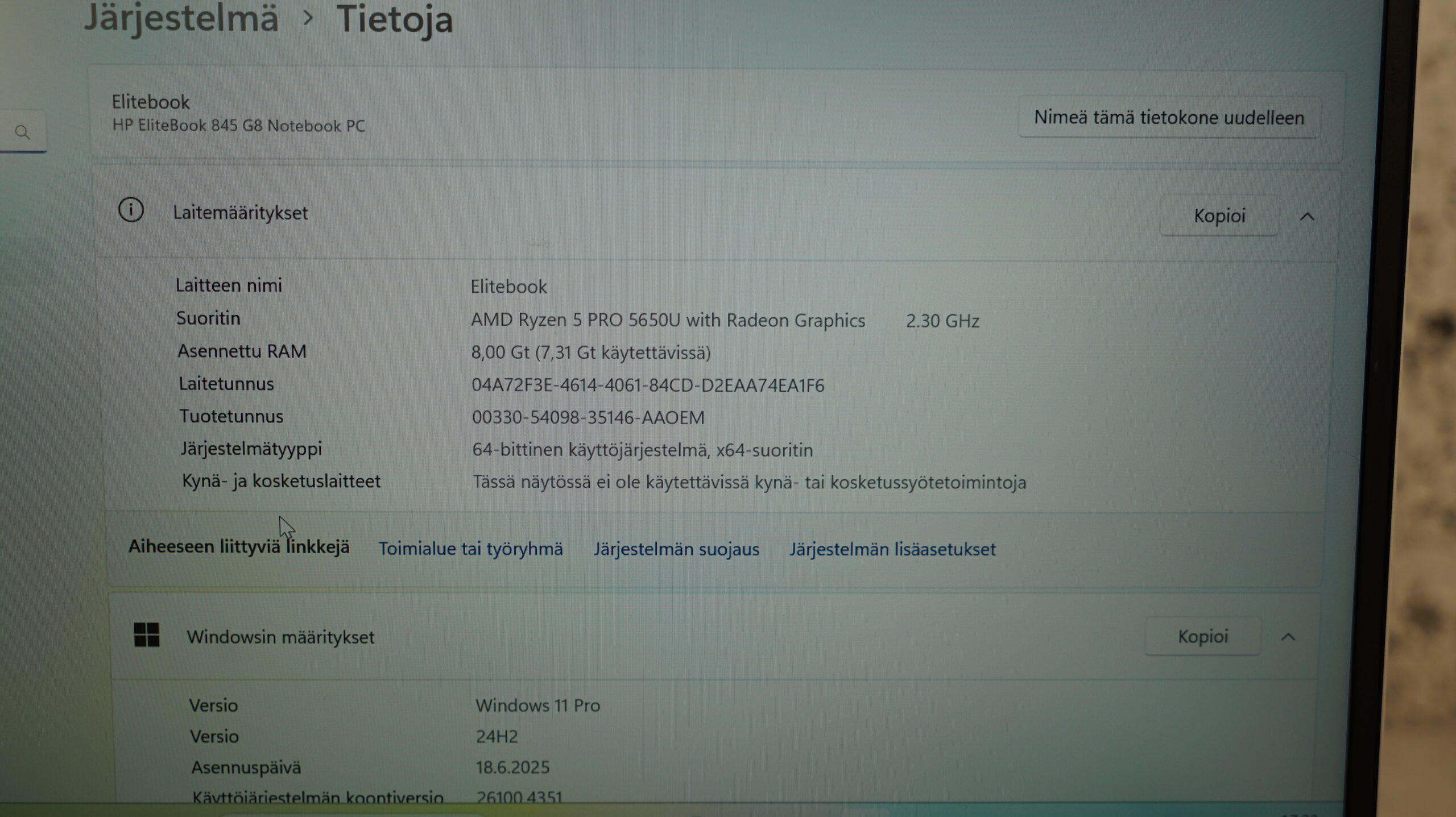 HP Elitebook 845 G8 kannettava
