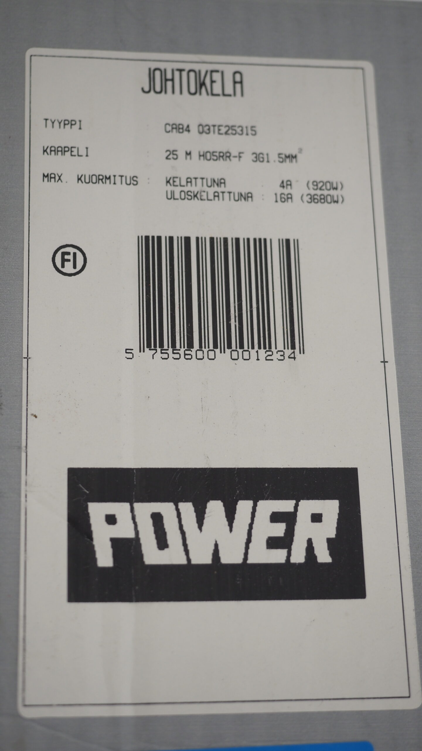 Jatkojohto, lämmitin, ulkopistorasia