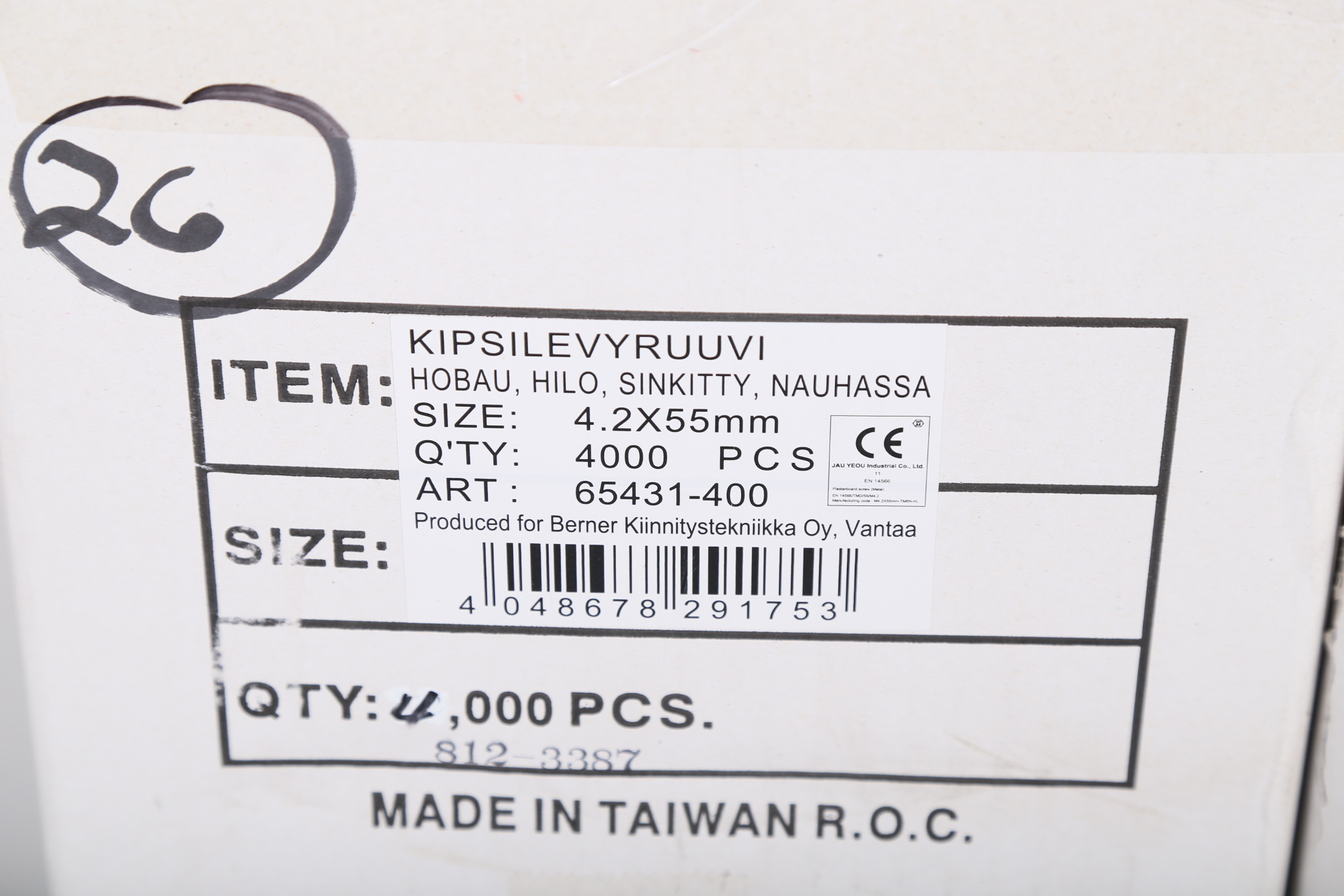 Kipsilevyruuveja erä