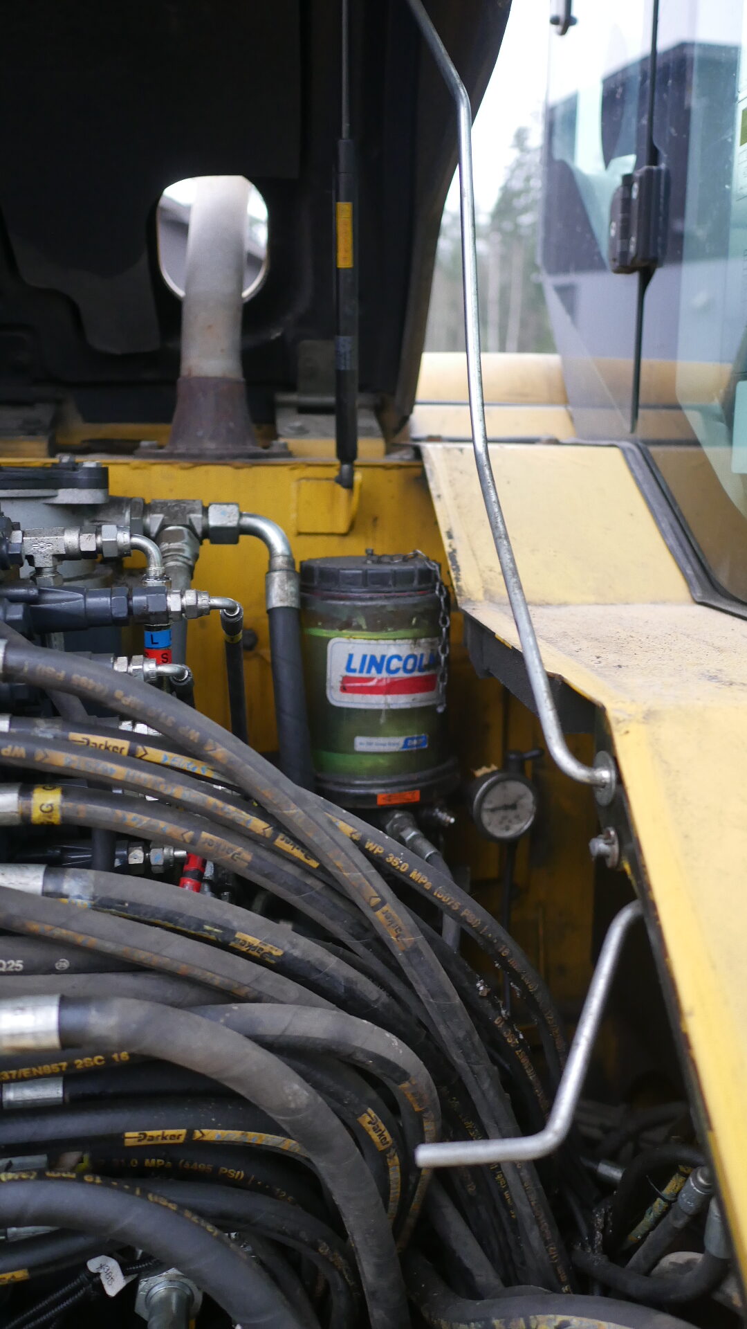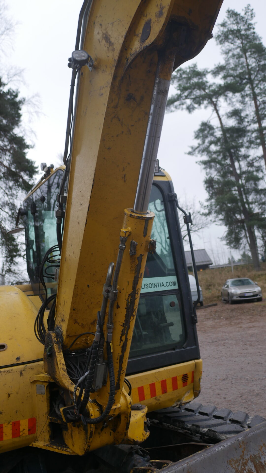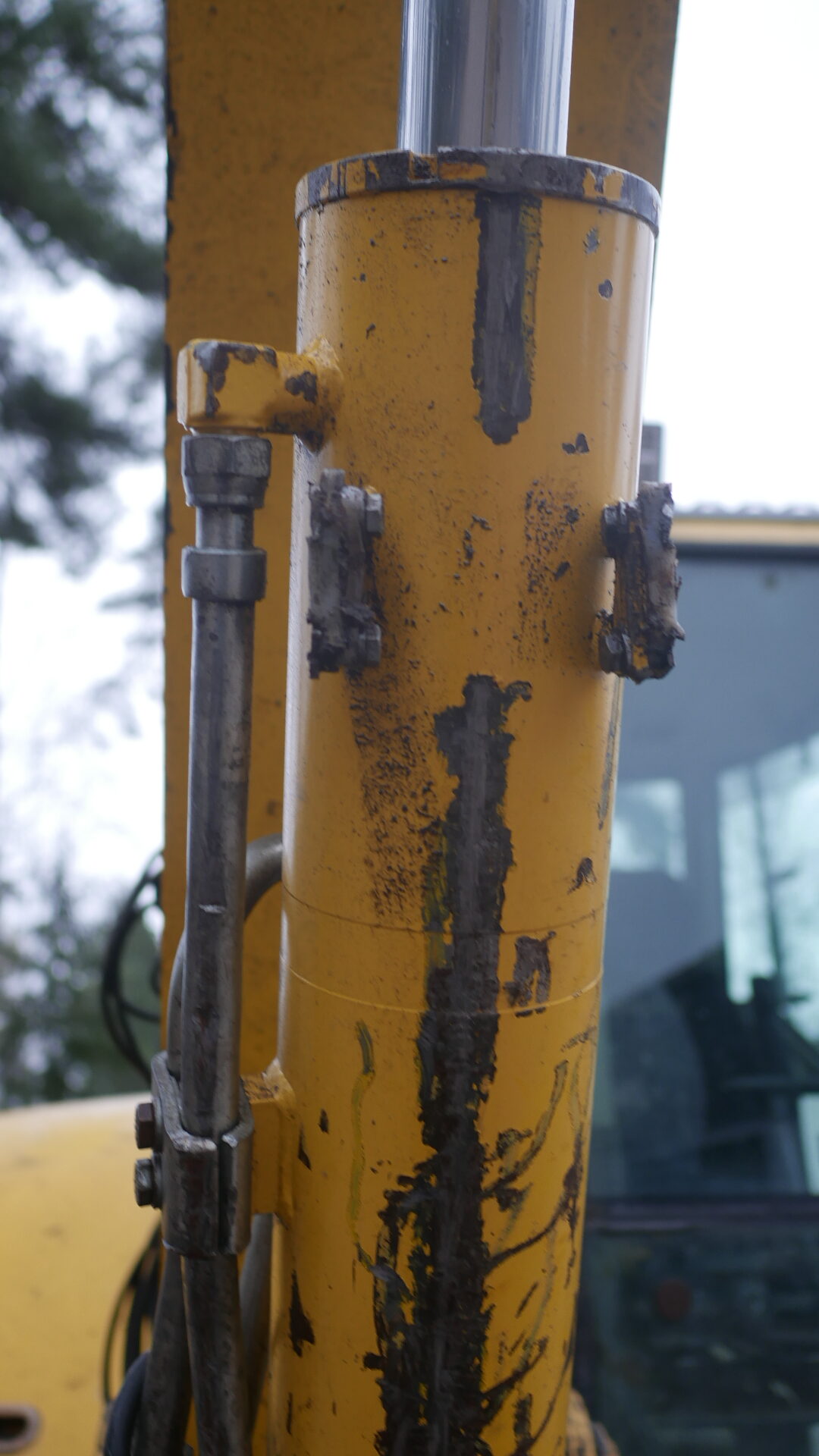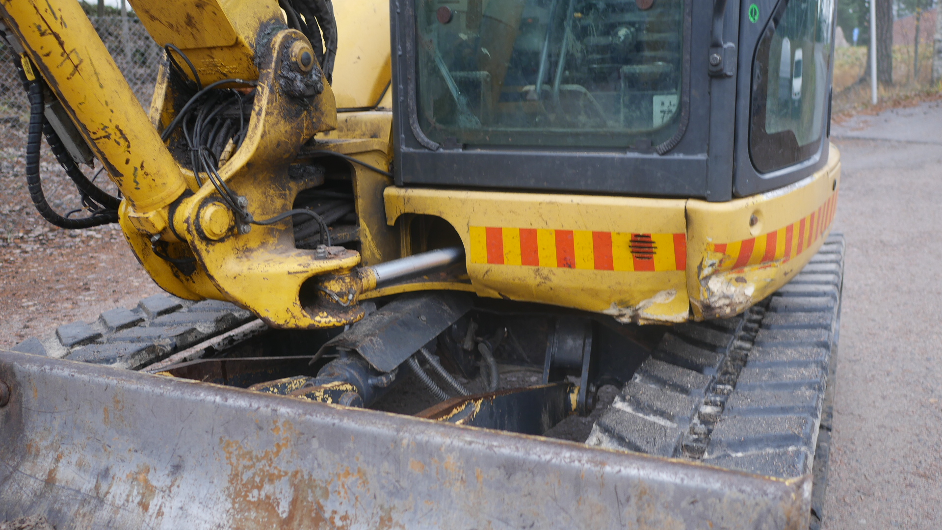 -sylinterin suoja puuttuu, kauhan kallistaja kallistelee itsekseen.