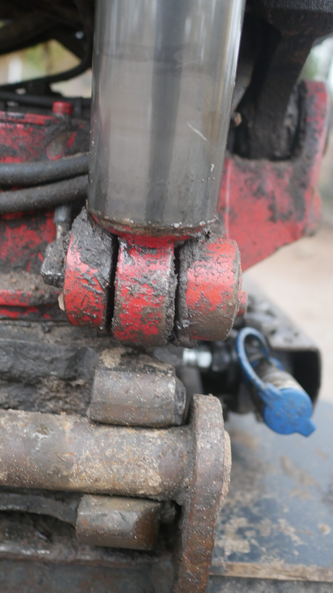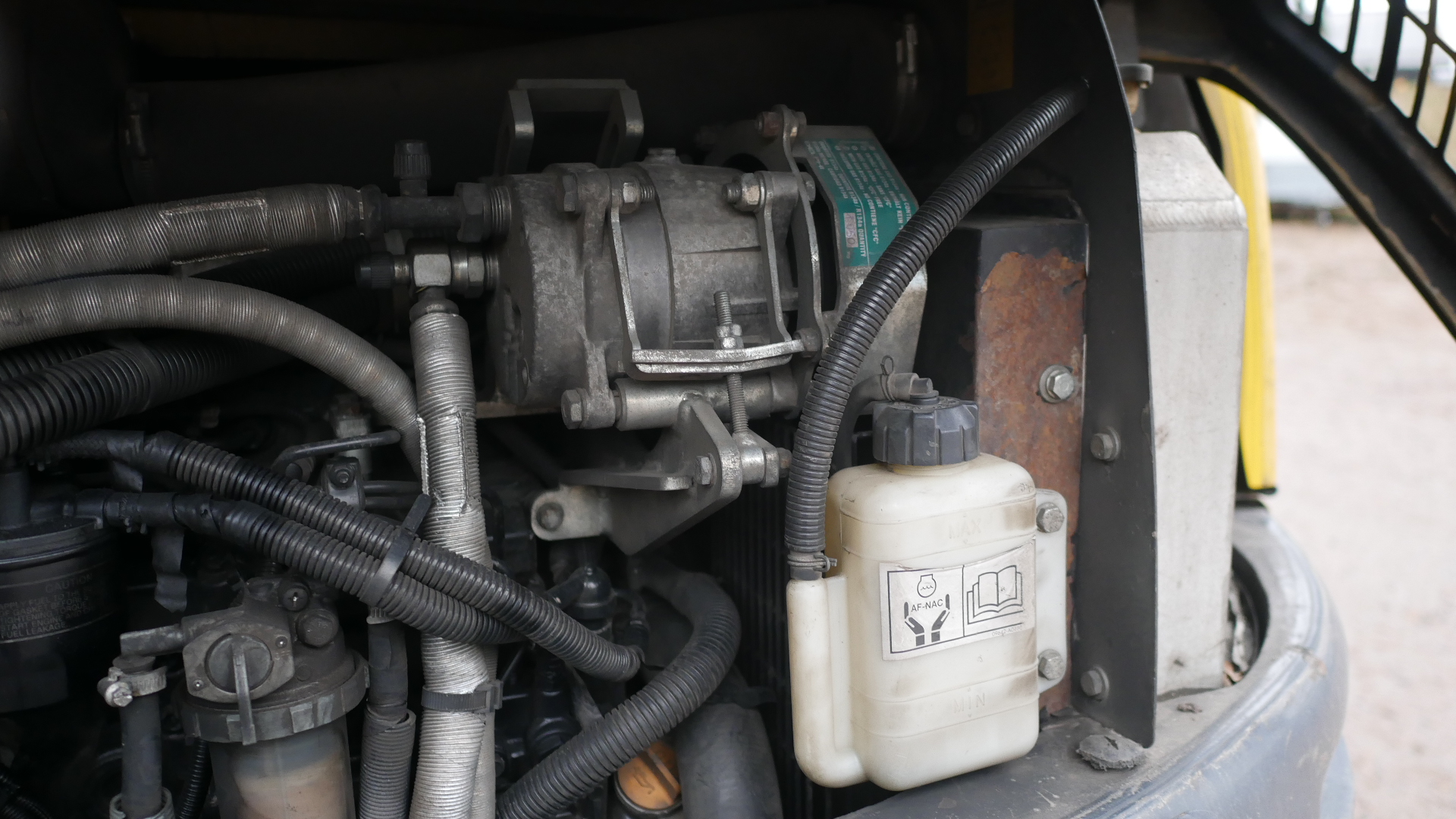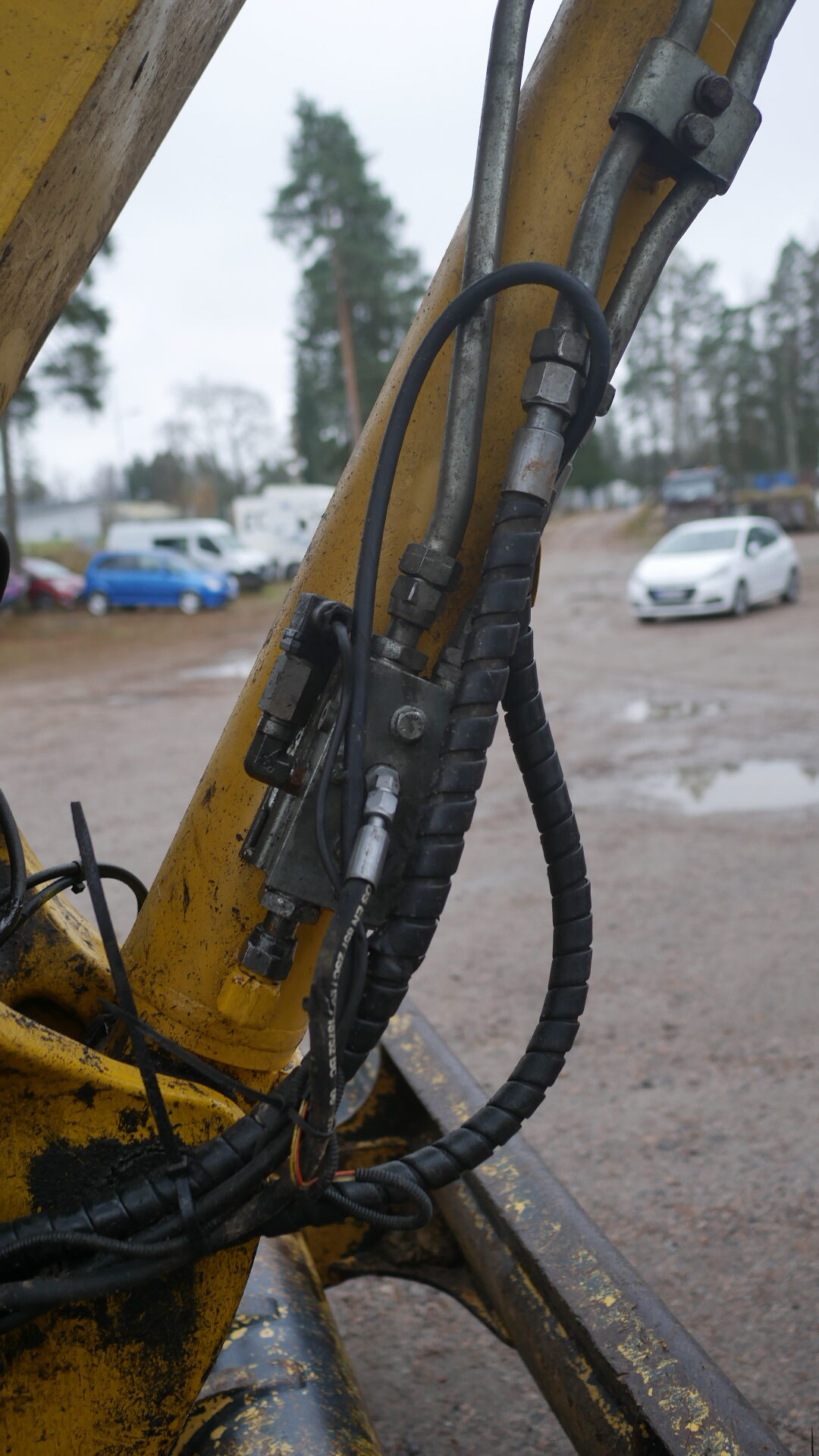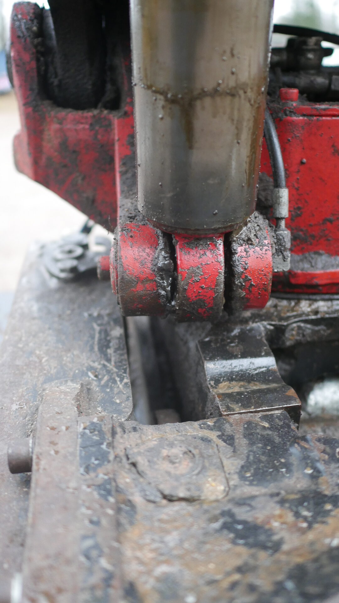 -sylinterin suoja puuttuu, kauhan kallistaja kallistelee itsekseen.