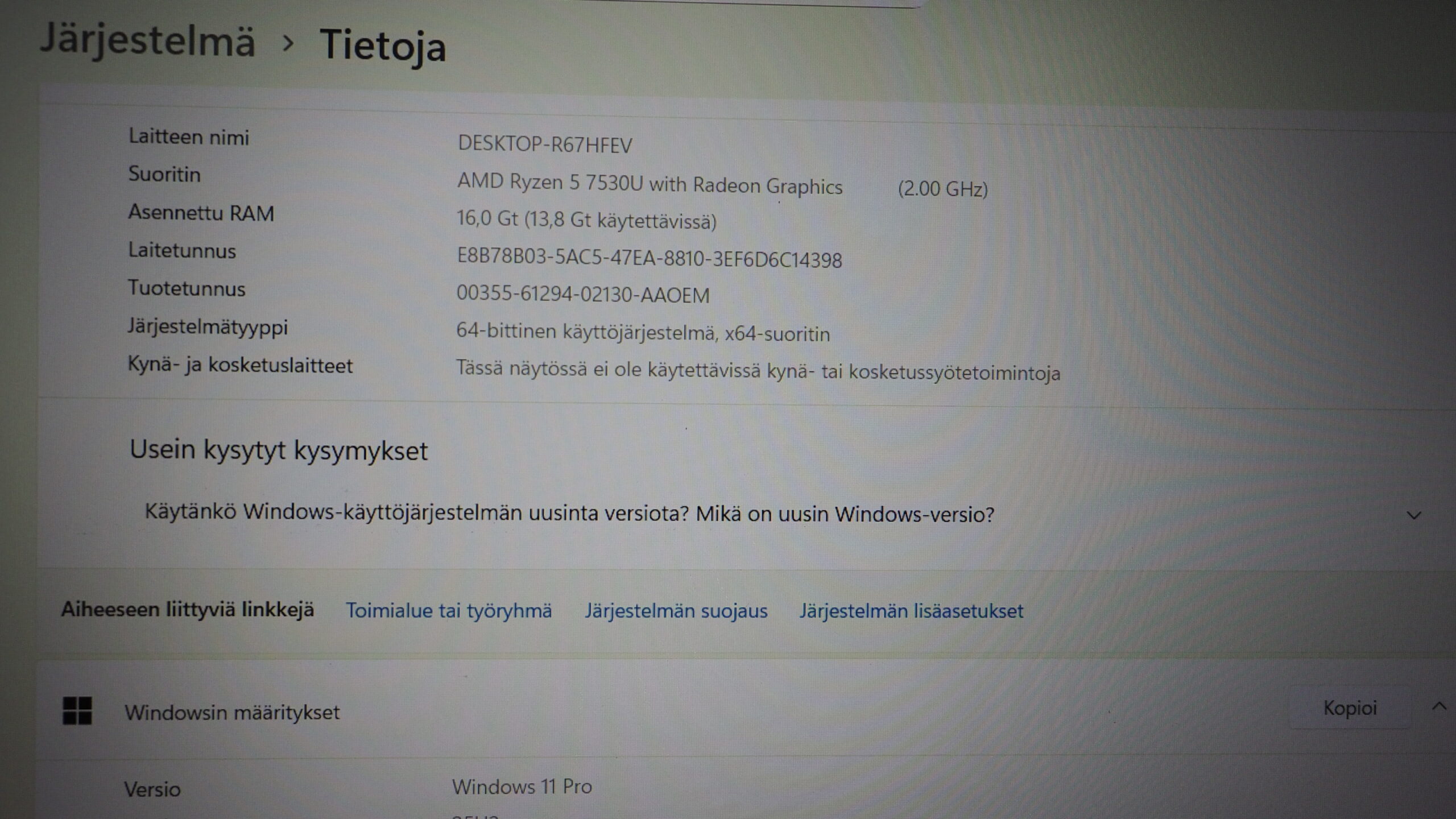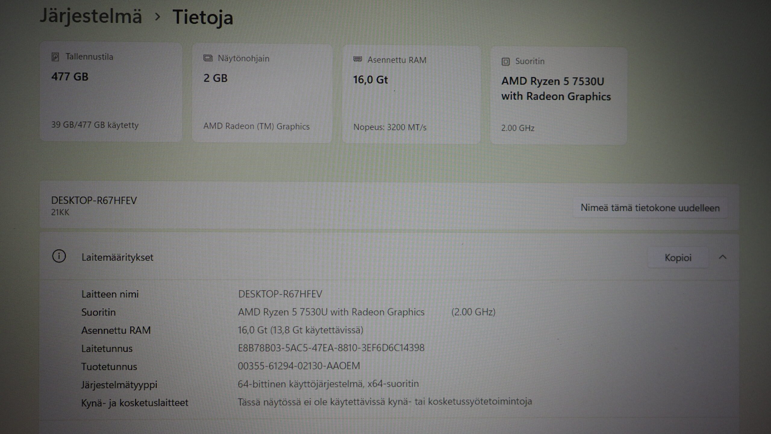 Suoritin AMD Ryzen 5 7530U with Radeon Graphics 2.0 Ghz