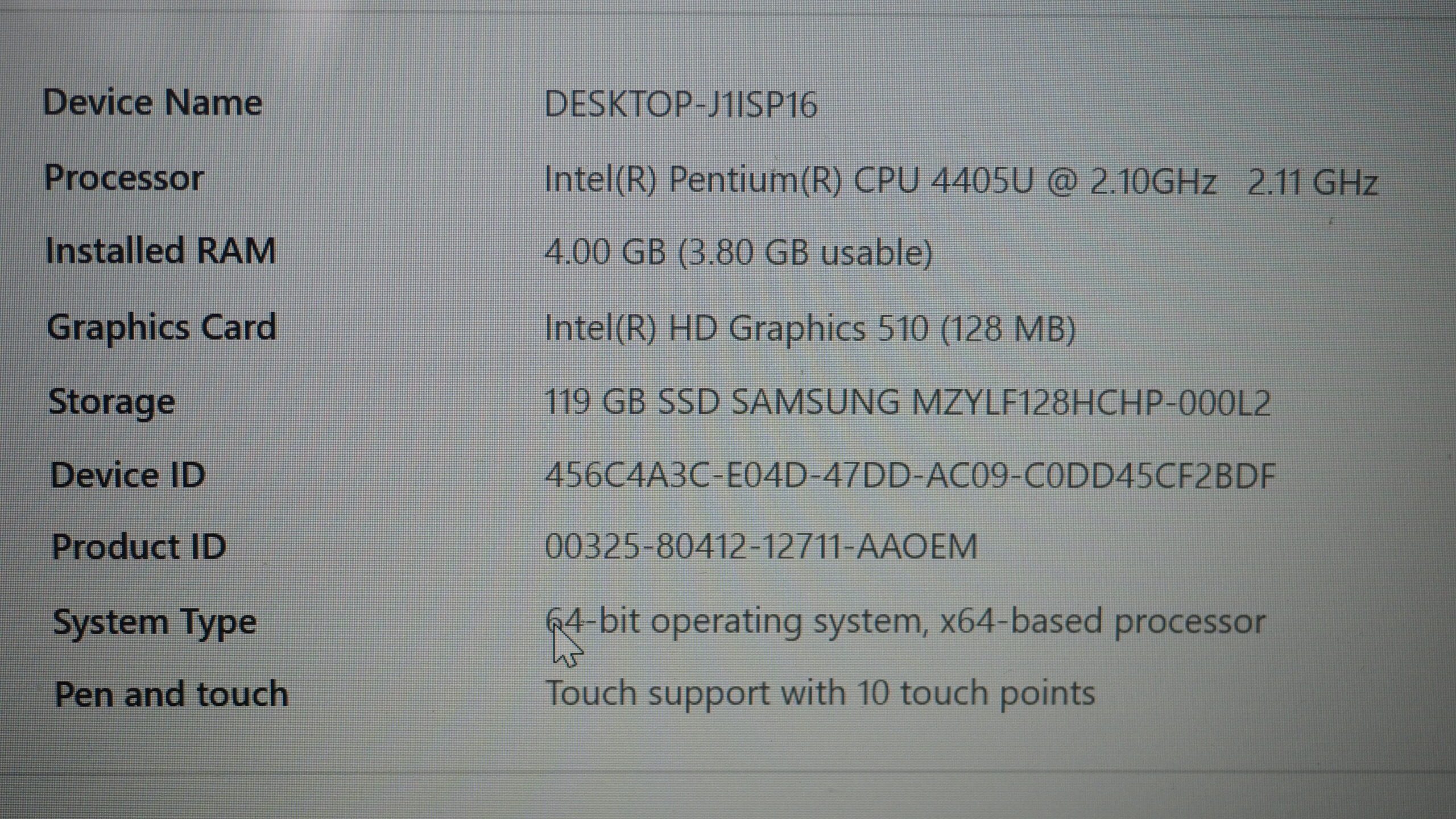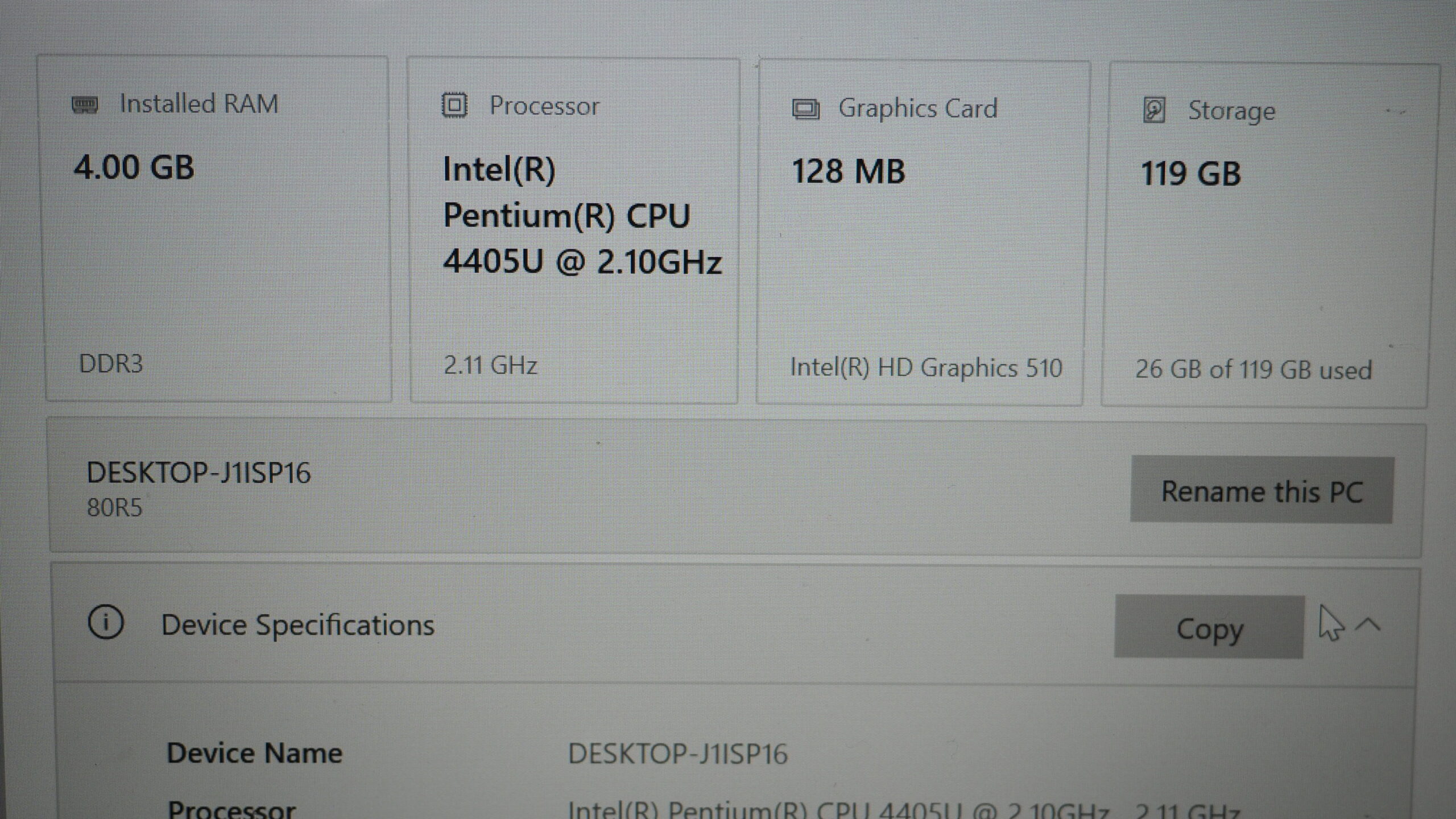 Intel Pentium 4405U @ 2.1 Ghz