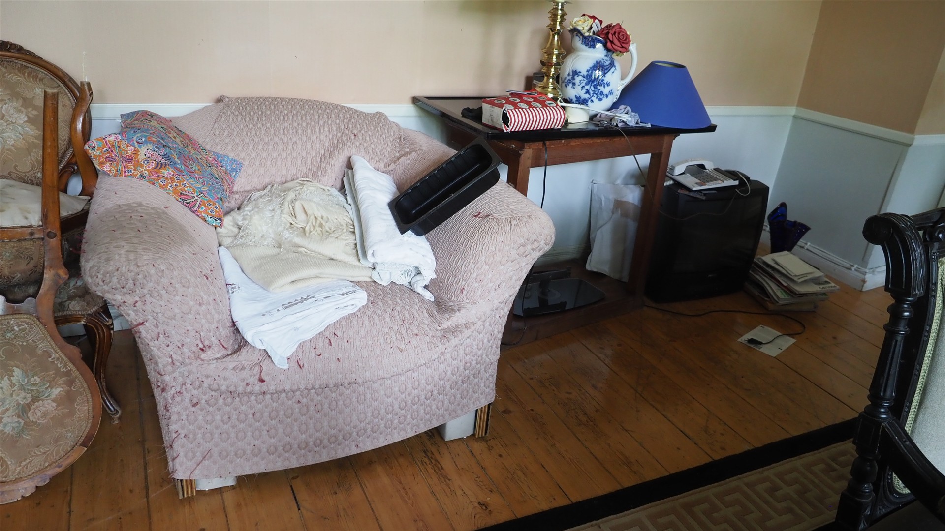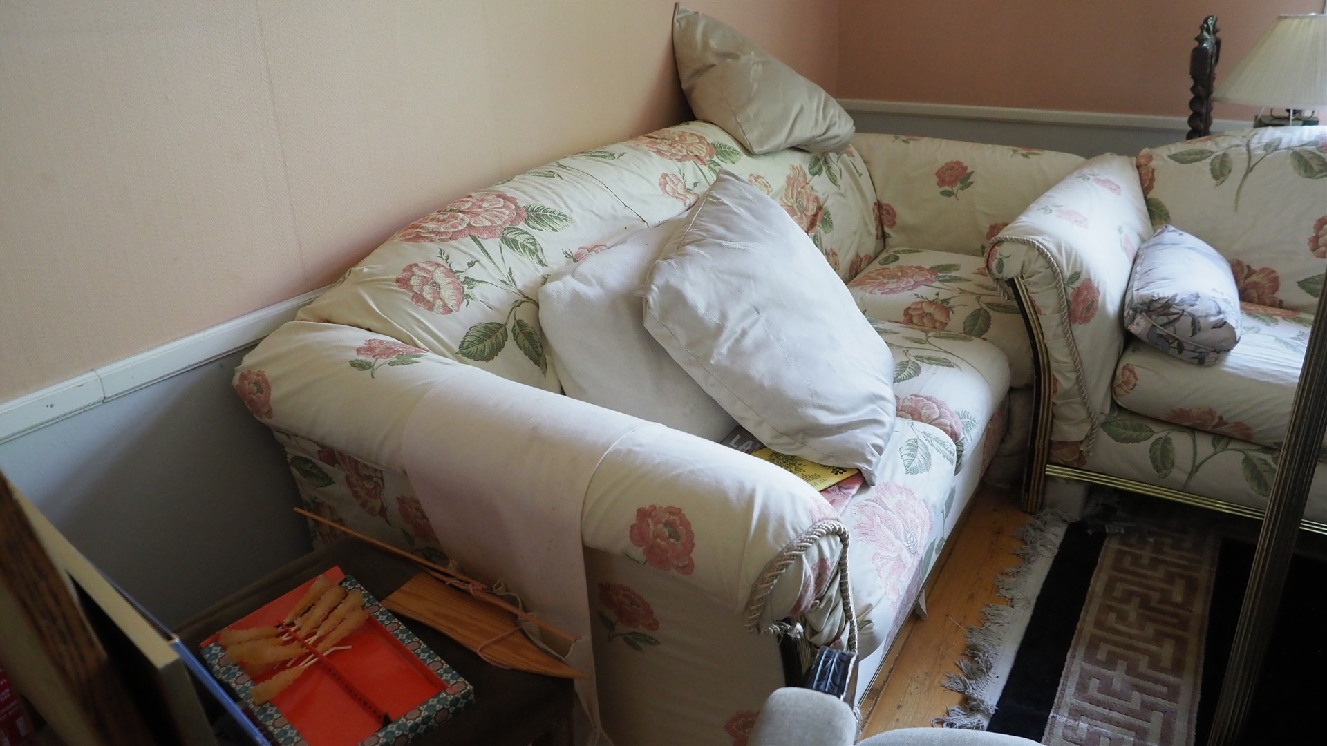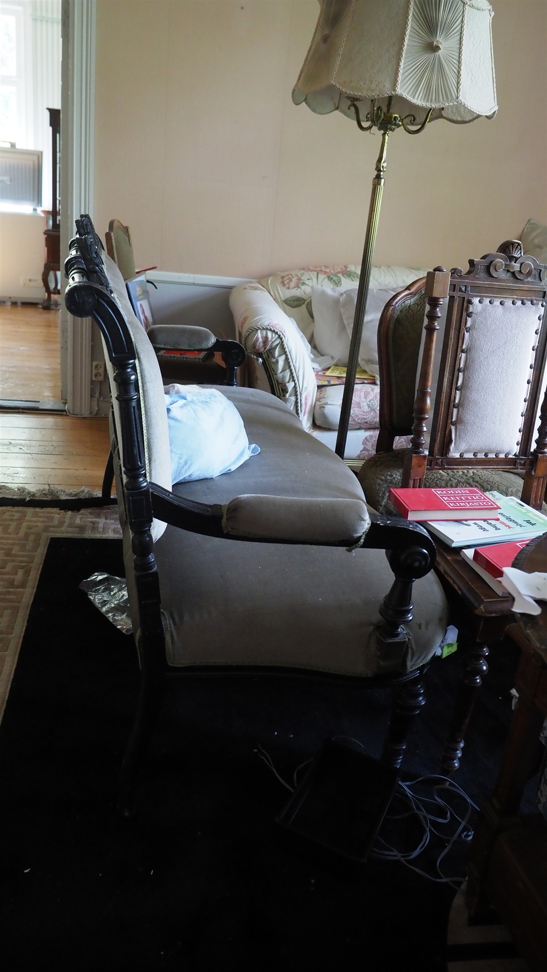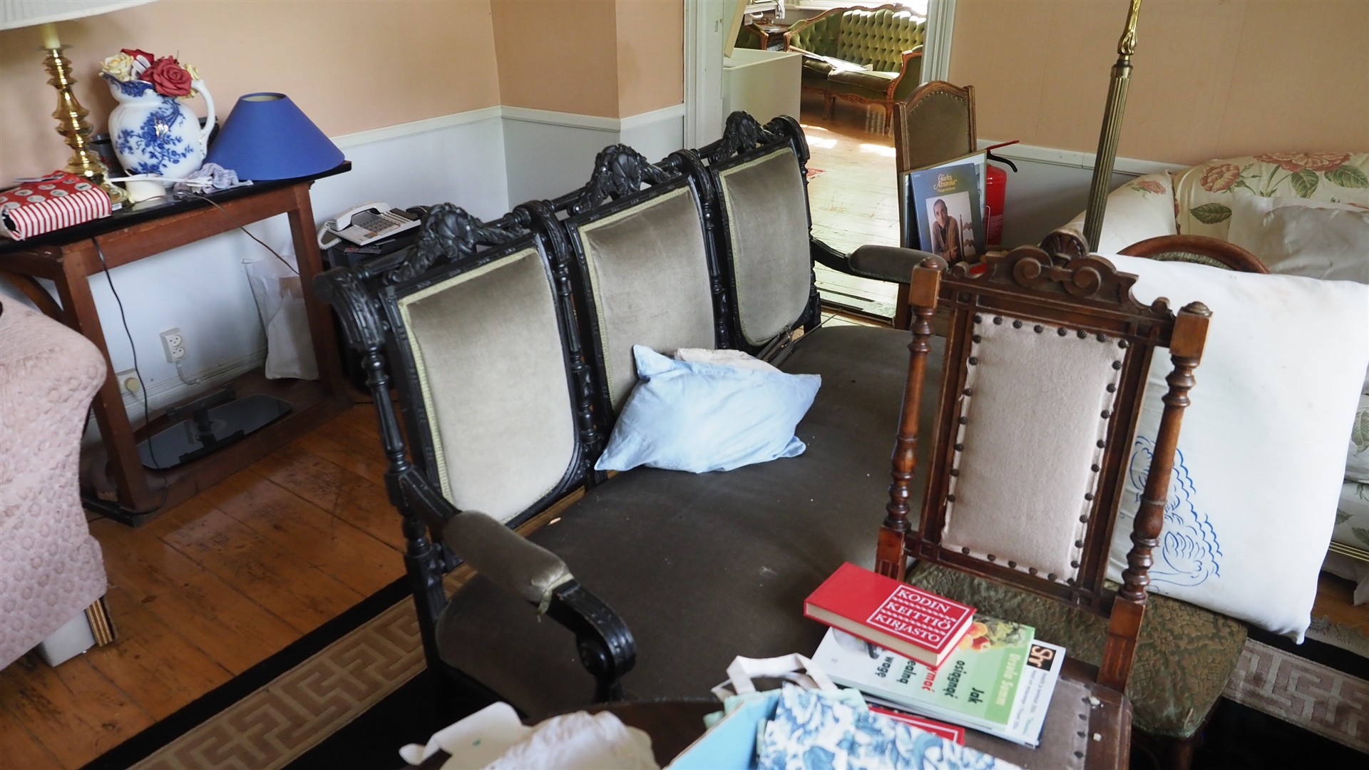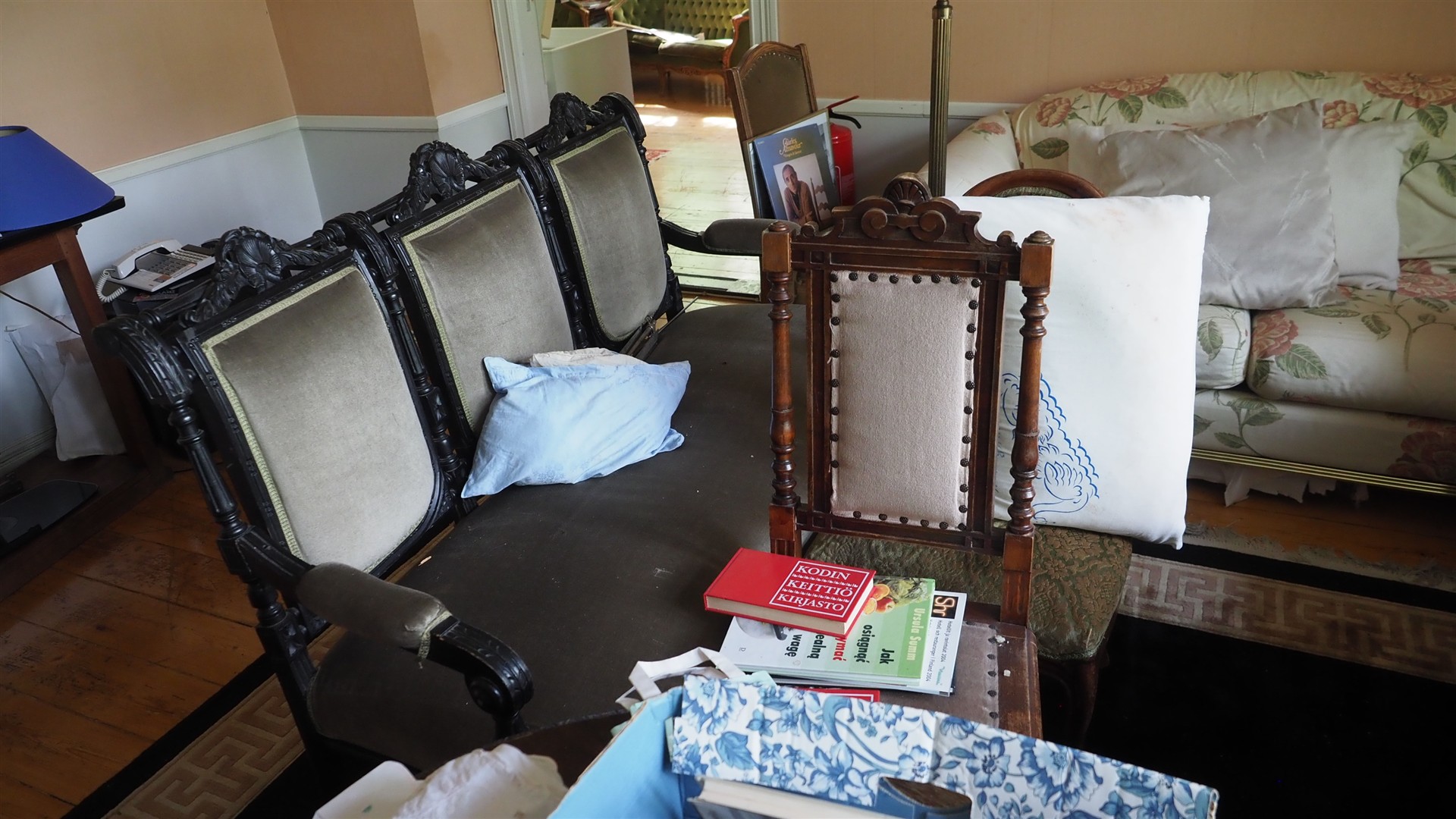 Sohvia, nojatuoleja, pöytä yms. kalusteita erä