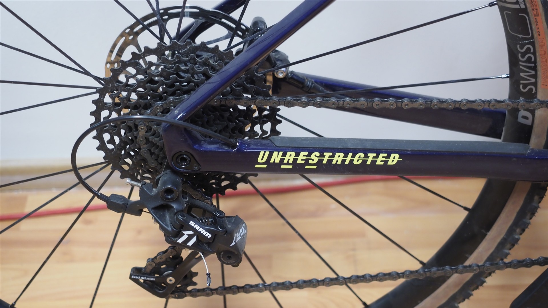 SRAM vaihta/jarrukahvat, SRAM Apex takavaihtaja, SRAM Apex kammet, DT Swiss vanteet,