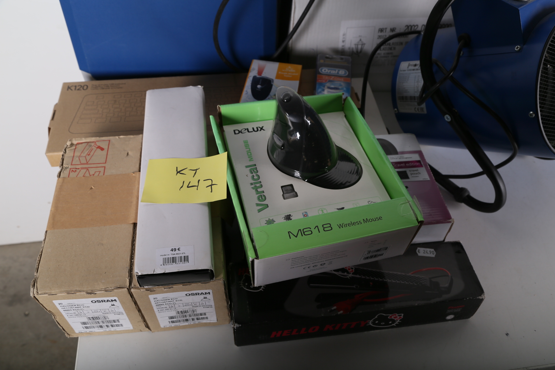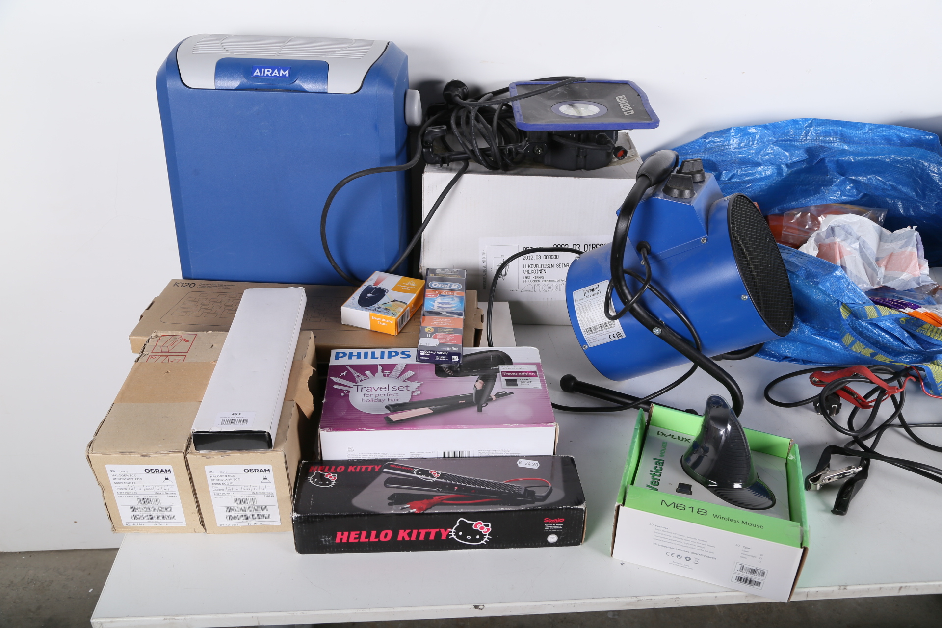 Lämmitin, laturi, valaisin, matkajääkaappi yms. erä