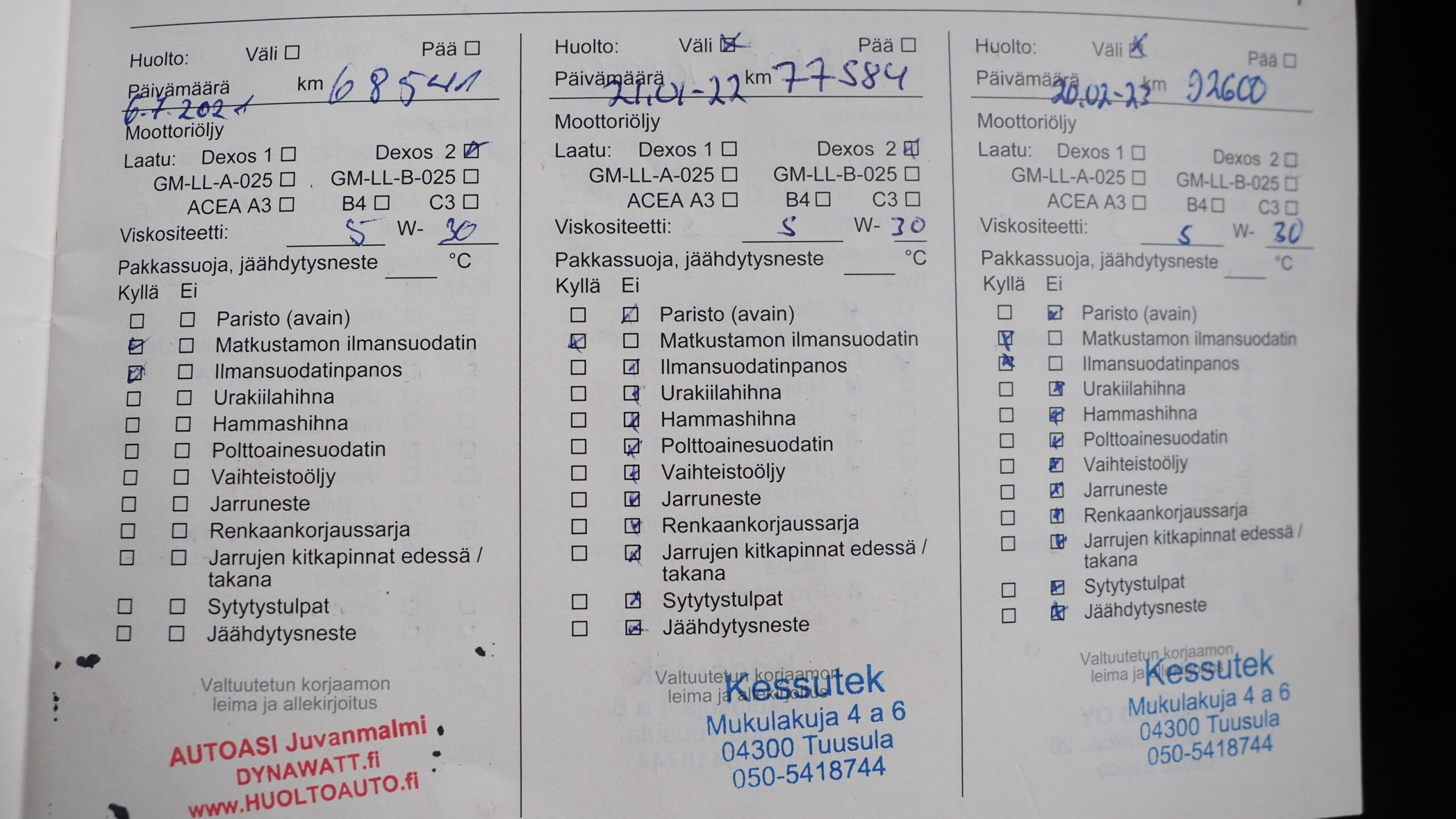 Mittarilukema n. 110 tkm.