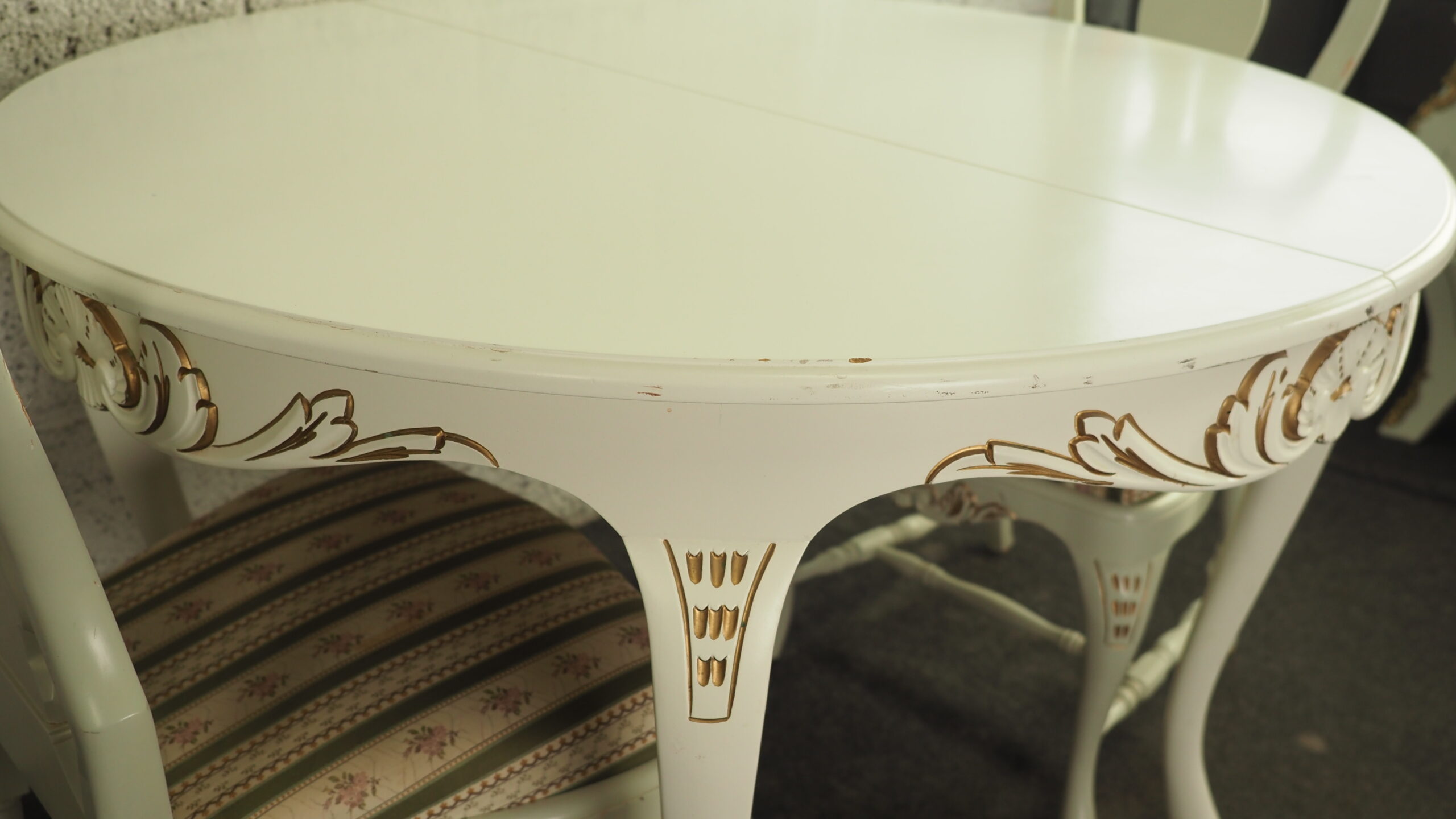 Pöytä + pyöreä pöytä + 6 kpl tuoli