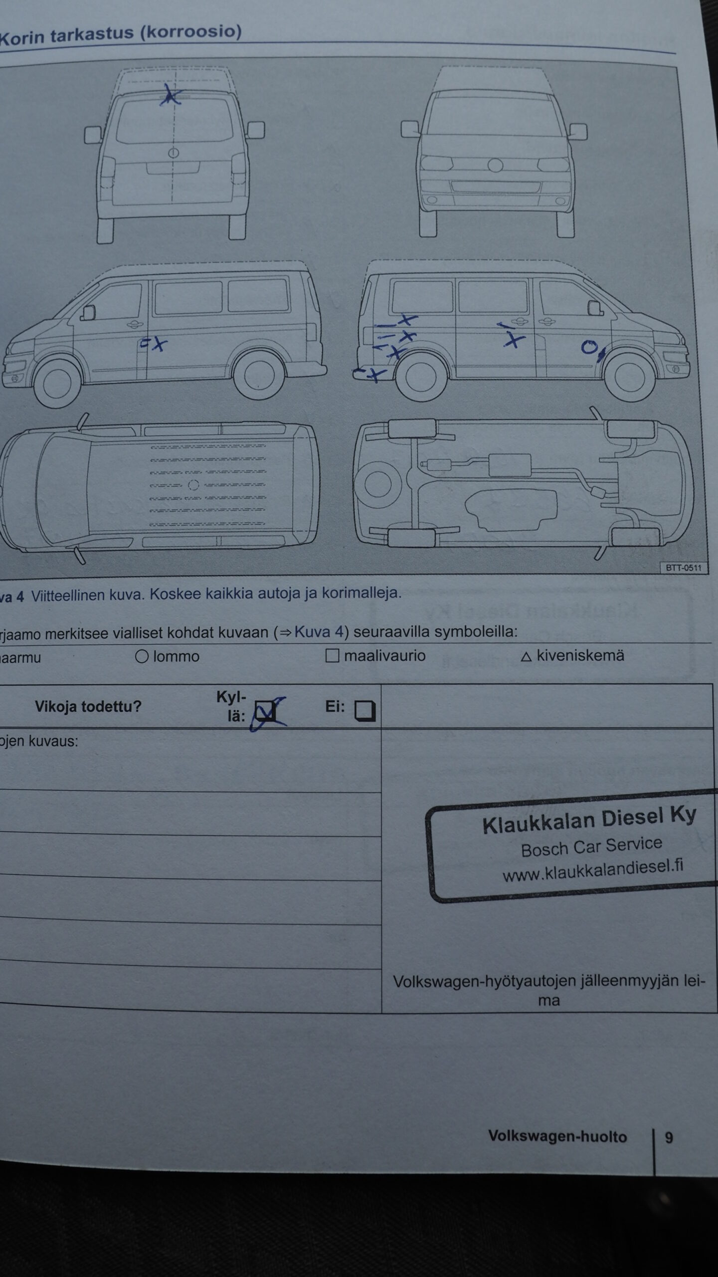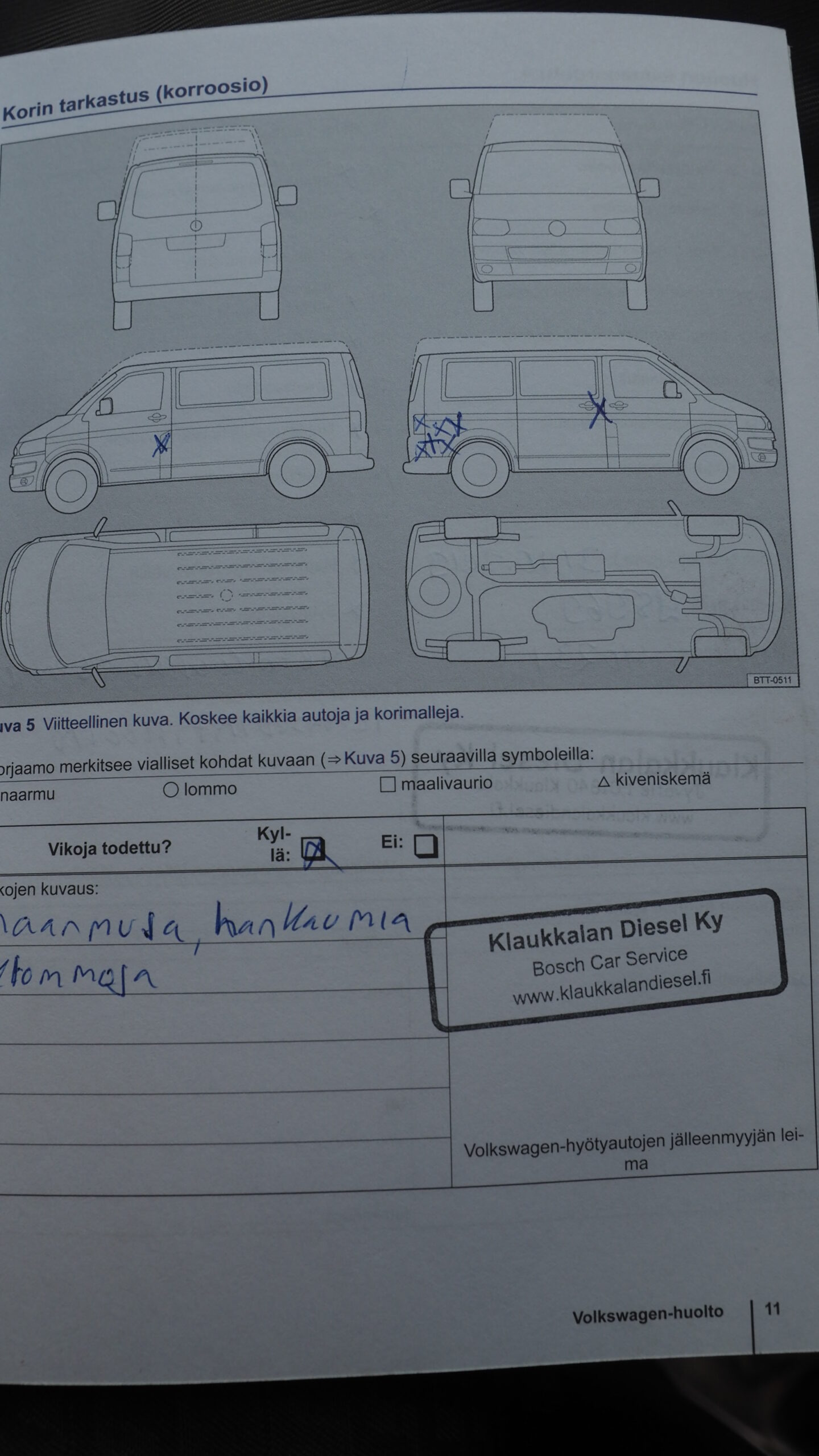 -jonkun verrran kolhuja/naarmuja, tuulilasissa halkeamia, kuljettajan penkin verhous rikki yms.